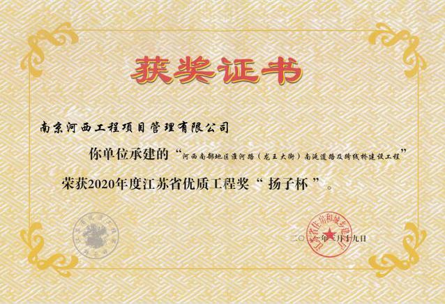 近日,江蘇省2020年度優(yōu)質工程獎“揚子杯”獲獎項目名單公布,河西集團新城公司所屬南京河西工程項目管理有限公司代建的河西南部地區(qū)淮河路(龍王大街)南延道路及跨線橋建設工程榜上有名。